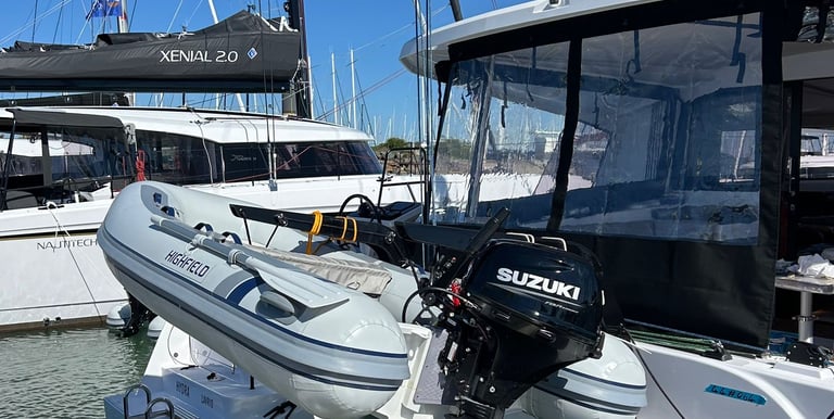 Fast and reliable 20hp Highfield 310 for speedy and confortable shore transfers.